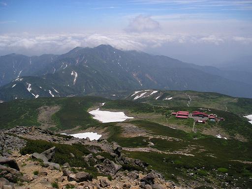 左に釈迦岳、右に別山を見ながらの稜線歩きは最高です。しばらく歩いては足を止め・・景色を眺める。。「いいですねぇ、最高!」 私達はこの言葉を、この日何回口にしたか分かりません。ササユリ、ニッコウキスゲの花などがお目見えしてきました。