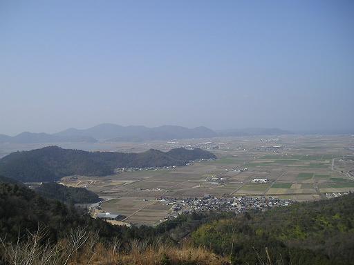 長い階段を上がって観音堂に着く。西方面が大きく開けており、湖東平野や琵琶湖が一望である。残念ながら、暖かな陽気で霞が強く遠望は効かない。それでも、比良が見えるとか見えないとか?年寄りは遠視だからとかで盛り上がる(笑) 観音堂の横、裏には大岩があり、乱丸さんやチーさん達は上るが、私はこれ以上バチが当る訳にはいかないので上れなかった。