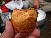 おーちゃんのザックからは主婦の分身とも言える・・大事な鍋!(個人差はかなりあると思うが・笑) はみ出た柄が哀愁を誘う(笑)