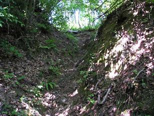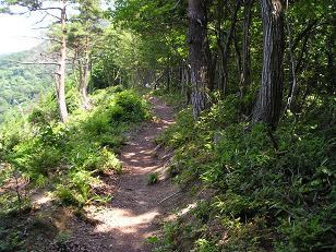 高時川沿いに林道を少し歩くと「山頂まで1.9K」の道標があり、左に入ってよく踏み込まれた緩やかな道を少し行くといきなり急登の始り! 風が無く暑いので汗が吹き出ます。・・寝不足の体にはキツイ!(--;)