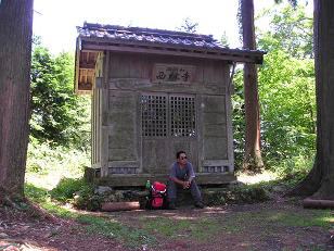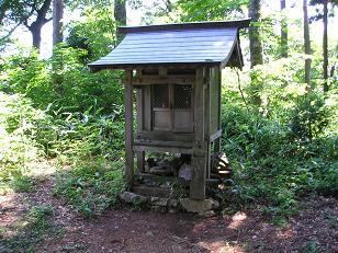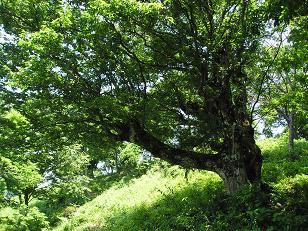 いくつかのブナの大木を見ながら11時15分に山頂に到着しました。展望は立木のためよくありません。山頂には西林寺と七々頭ヶ岳観音のお堂があります。湖北では山岳宗教が盛んだったので、この山も例外ではないのでしょう。お堂の前は日陰になっていて風が涼しくて気持ちがいい。しばらくボォ〜っとしていました。(^^ゞ