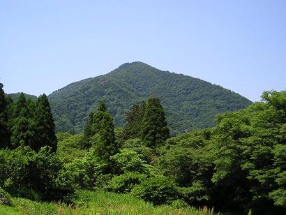 上丹生の集落に近づくと、前方にガイドの写真と同じ山容の七々頭ヶ岳が見えてきます(当たり前!) なかなか形のいい山。ガイドのとおりケヤキの大木(神木)から入って行くと、突き当たる手前の空地に大阪ナンバーと福井ナンバーの車が止っていたのですぐに登山口と分かり、すぐ仕度をして10時5分に出発しました。