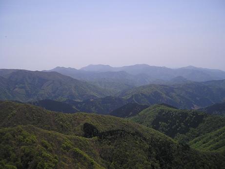 絶景だ!藤原岳が頭だけ覗かせ、御在所や雨乞岳、琵琶湖方面もよく見える。下の斜面に咲くピンクの花が、ツツジかシャクナゲかでしろくまさんと議論する。他の方はあまり興味がなかったようだが。。(笑)