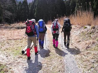 道中、まるで昔からの知人のように話が弾む。ジオンさんは、夏によく酒を飲みに(笑)若狭へ来られるそうだが山を意識した事がないという。みなさん、今日は口が軽いようで好き勝手に話題を提供してくれるので助かる。見える山などを紹介しながら走るが、その度にみなさんが車中から写真を撮られる。「また木を撮ってしまったー!まるで電柱のコレクションや!」 ま、だいたいこんな感じである(笑) 三十三間山の姿をよく見せるために梅街道を走ったのも分かってくれただろうか?和気藹々とあっという間に登山口に着いた。(訂正しますが、ジオンさんが若狭に来るのは合宿の下見だそうです)