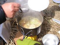楽しい宴の始まりである。ジオンさんや和たんさんの噂?の味噌鍋!私のコンロを貸してエリンギやポテトを炒める。私がやっと手に入れた特選ホルモンはどうするねん!?と一瞬思ったが・・みれさんのを借りる。でも、さすがにヘシコを焼くわけにはいかなかった(コンロが油で汚れるので) 味噌鍋がなかなか煮詰まらないと思っていたら?・・ガスがあまりなかったようである。私の自家製のガスを!?・・と言いたかったがやっぱり品をなくすので言えなかった。(^^ゞ 美味しい食事をたらふく食べて大満足♪ありがとうございます。心配したヘシコもホルモンも気に入ってもらったようで。。コーヒー、デザートに・・?忘れるとこだったが、チーさんのヤカンには下界を感じさせられた(笑) このまま永遠に続けたく思えた宴も、天気が悪くなってきたようなのでお開きとする。余ったヘシコは全部和たんさんに差し上げた(笑)